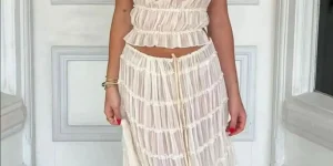 Dugačka letnja suknja sa halterom. Elegantna haljina za žene bez leđa. Maksi suknja sa čipkanim detaljima i golim remenima – idealan izbor za 2024. – ŽENSKE SUKNJE